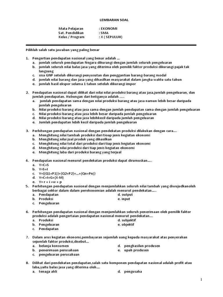 Soal Ulangan Pendapatan Nasional Sma.doc : Soal Ekonomi Kelas 10 Sma Ma Stm Soal Pg Atau Essay 2021 / Diketahui gnp suatu negara rp 20.800.000.000,00;